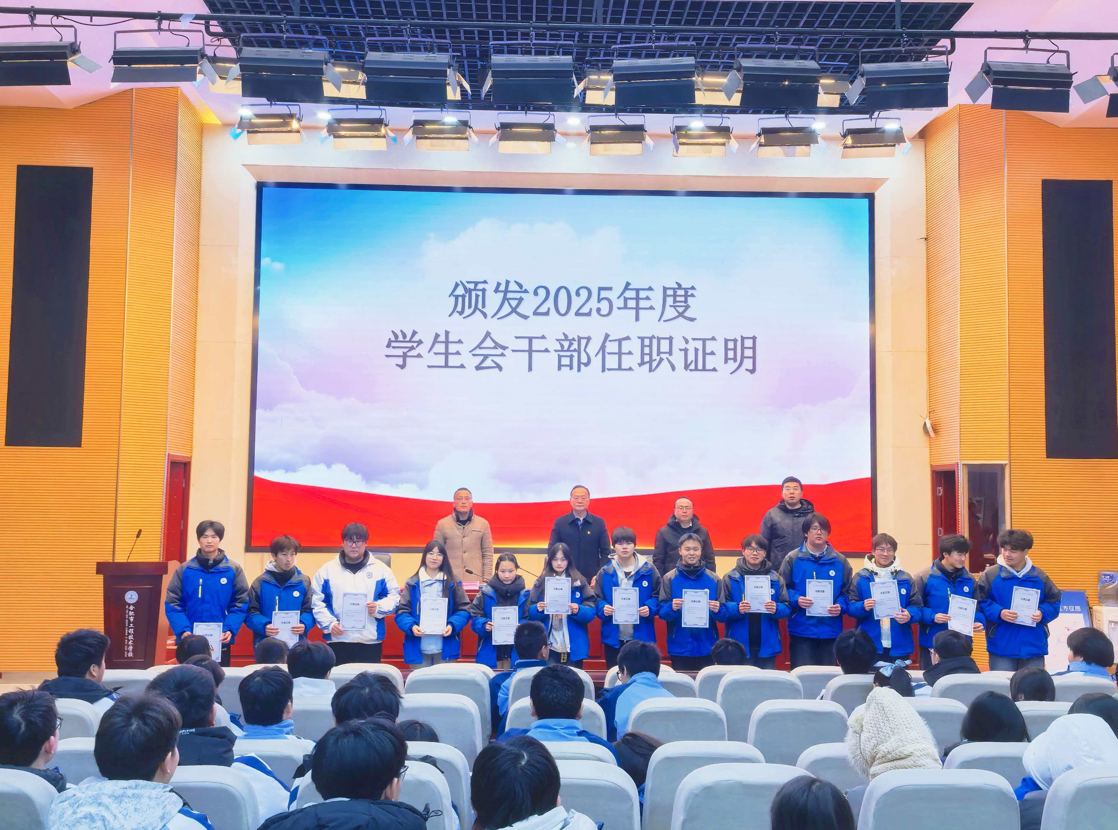 大会在庄严的《中华人民共和国国歌》声中拉开帷幕。校领导致开幕词,肯定了2025年度学生会的工作成效,寄语学子们勇担使命、团结奋进。随后,大会听取了《合肥市工程技术学校2025年度学生会工作报告》,全面回顾过往工作,明确未来发展方向。