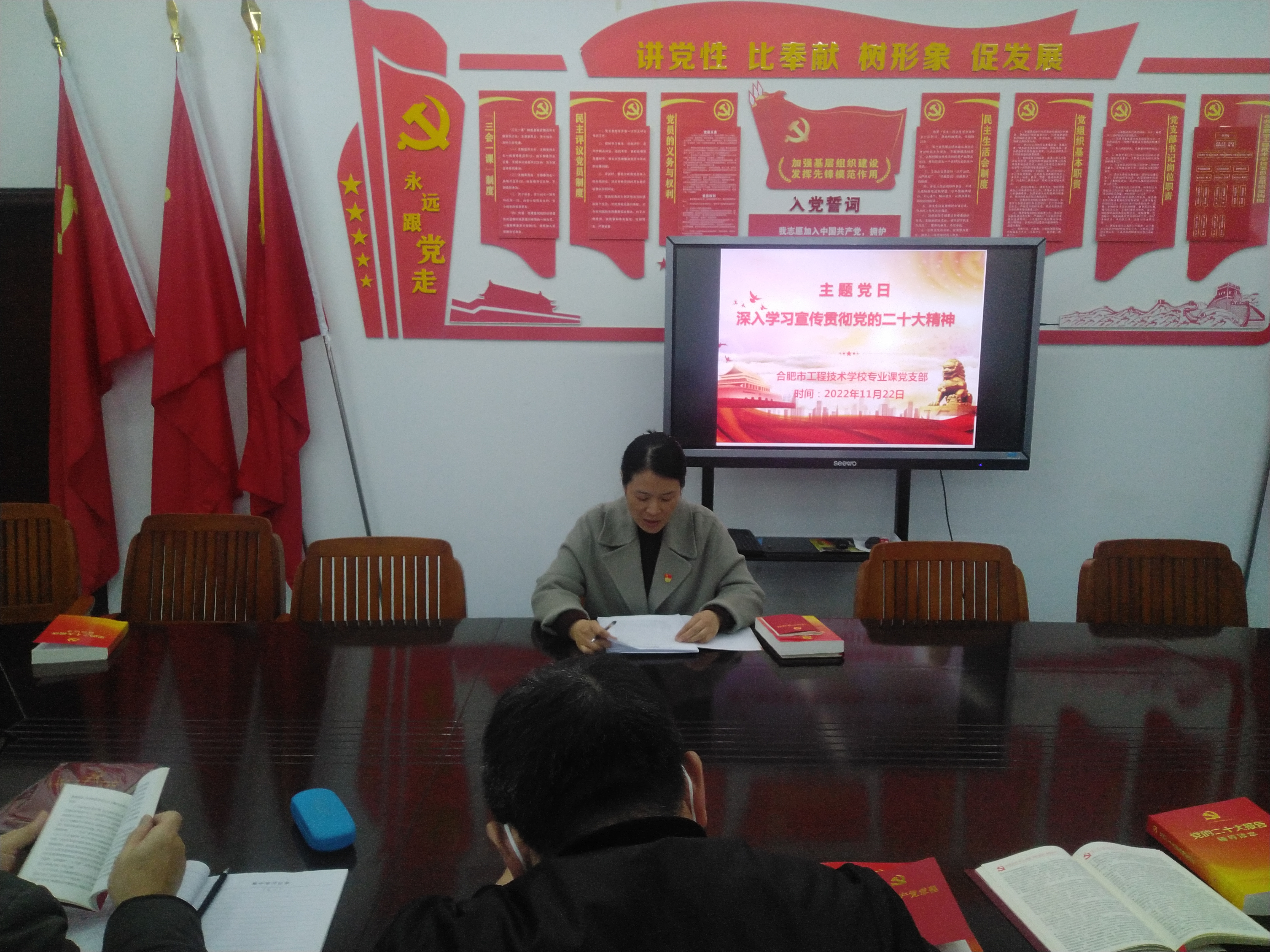 为深入学习宣传贯彻党的二十大精神,把全体党员教师的思想统一到党的二十大精神上来,把力量凝聚到学校发展的各项任务上来,近日,专业课党支部开展主题党日活动:学习宣传贯彻党的二十大精神。
