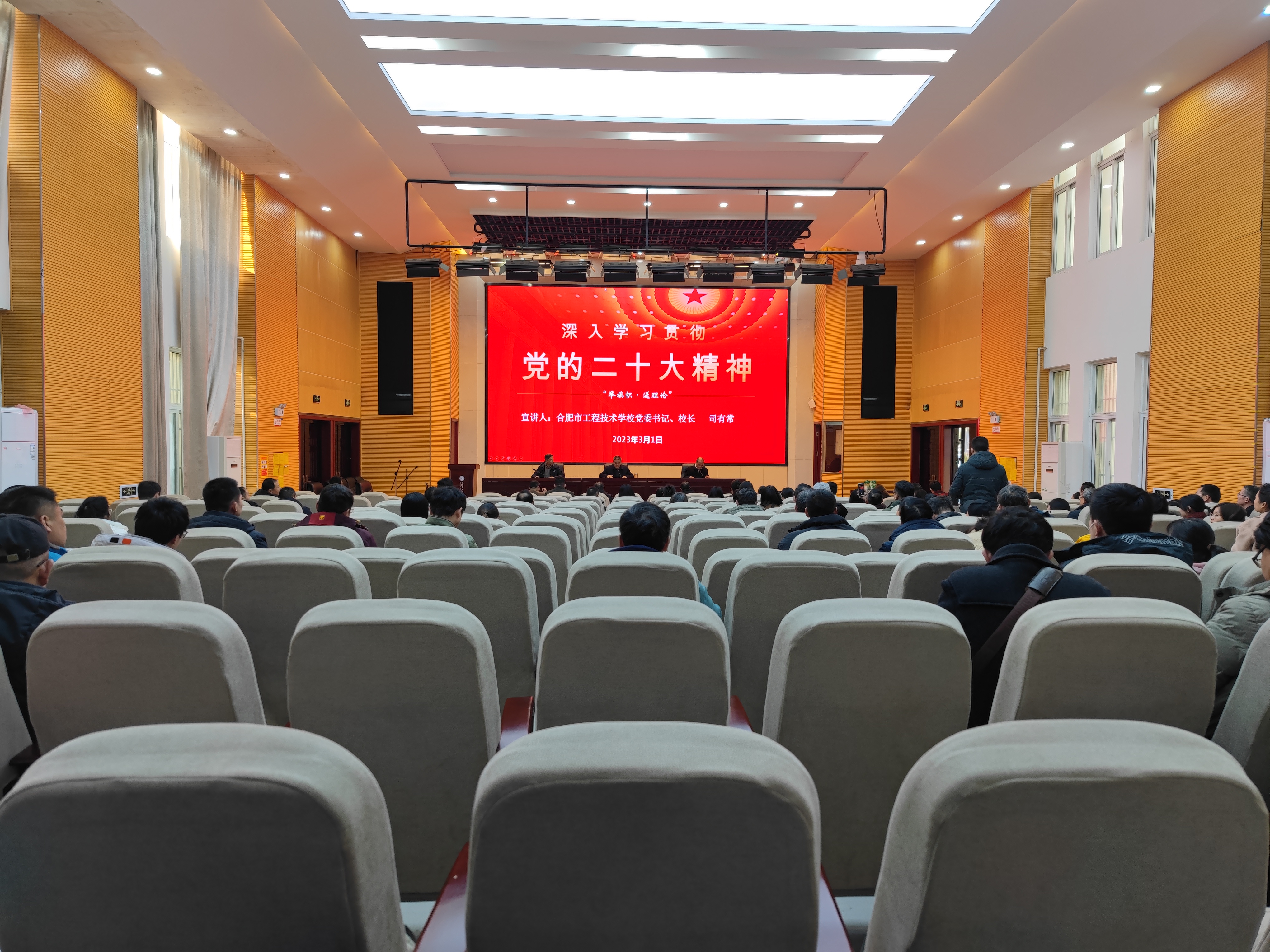 为了深入贯彻党的二十大精神,推动党的二十大精神在我校落地生根、开花结果,3月2日,我校党委组织开展了“举旗帜 送理论”学习贯彻党的二十大精神专题宣讲。校党委书记、校长司有常作宣讲,全体教职工参加宣讲会。
