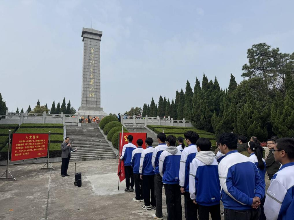 随后,全体党员面向党旗重温入党誓词,全体团员面向团旗重温入团誓词,铿锵有力的誓言彰显了师生们不忘初心、砥砺前行的信念。仪式最后,全体师生依次绕行瞻仰烈士纪念碑,敬献白色菊花,向革命先烈鞠躬致敬。