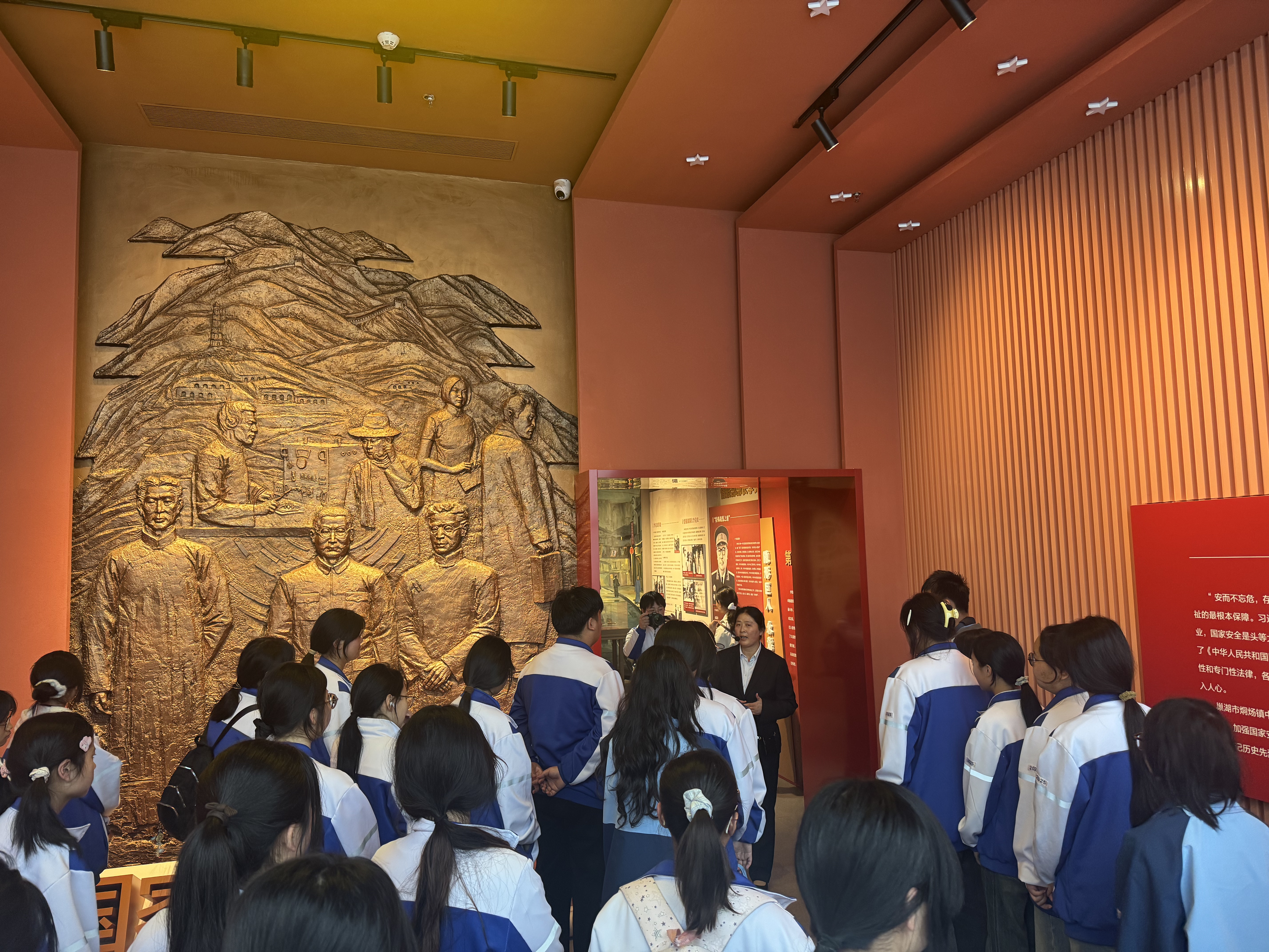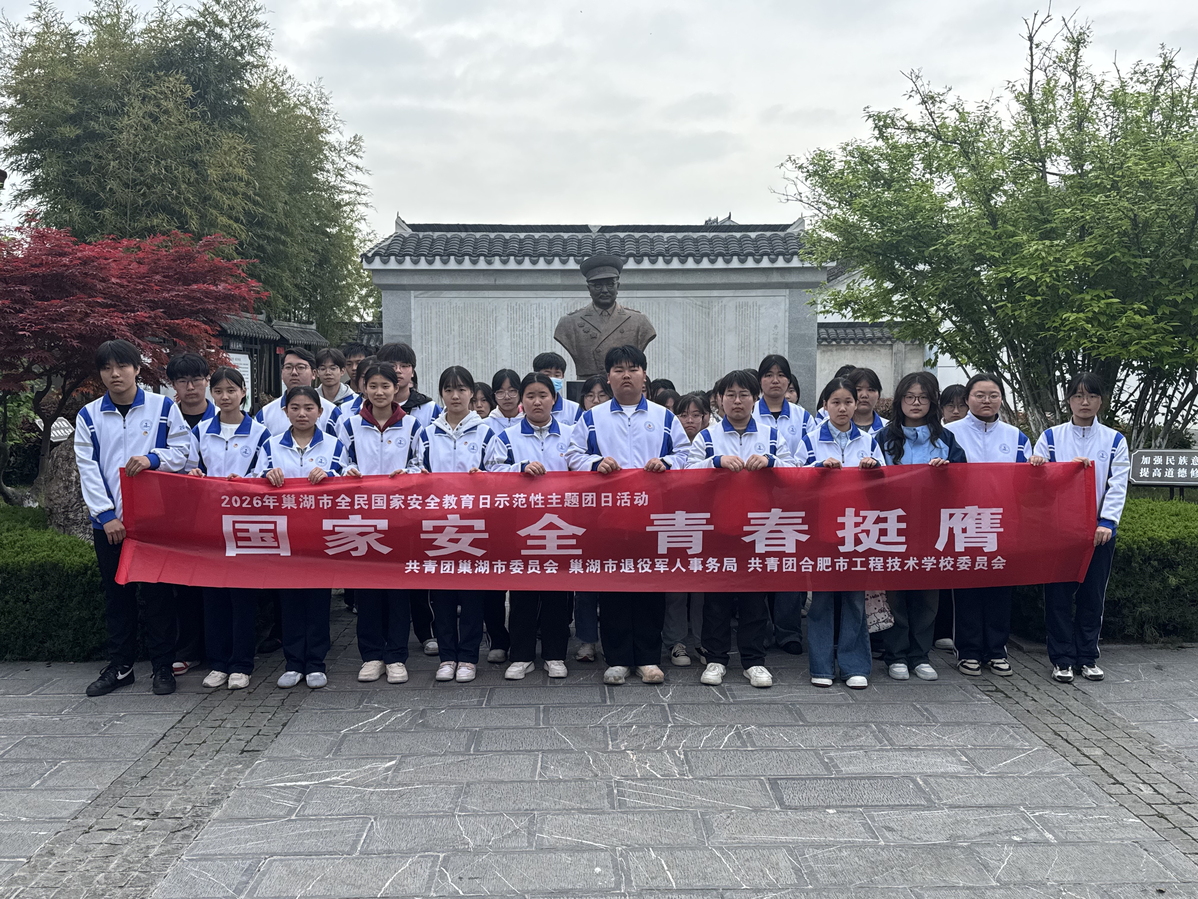 为深入学习贯彻党的二十大及二十届历次全会精神,落实习近平总书记关于国家安全教育的重要指示,提升青年国家安全意识,在第十一个全民国家安全教育日来临之际,巢湖市委国安办、团巢湖市委、巢湖市文旅局、烔炀镇团委联合我校团委,开展“国家安全 青春挺膺”示范性主题团日活动,50 余名师生赴巢湖市烔炀镇参与实践学习。
