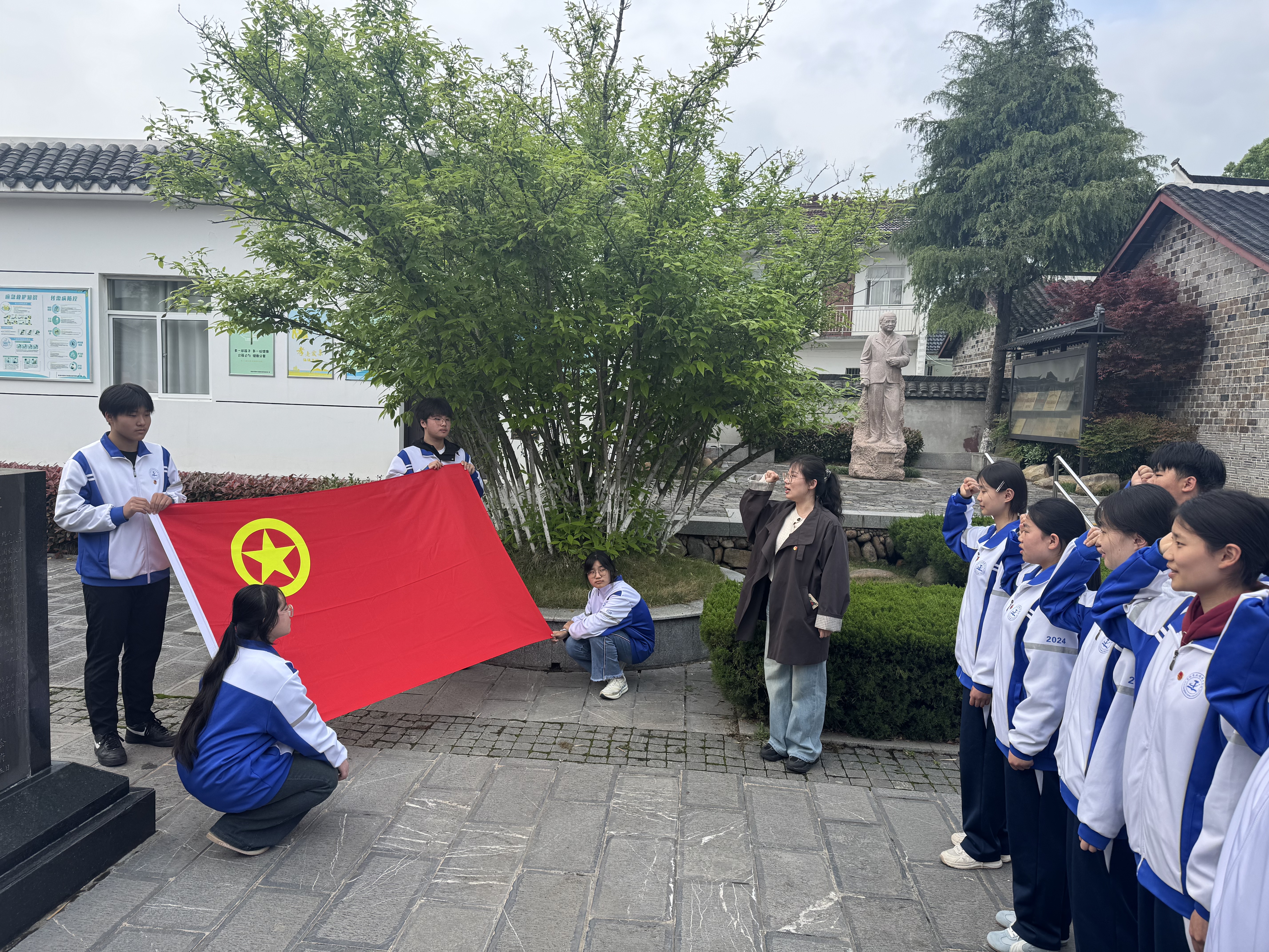 参观结束后,学生团员面向李克农将军雕像,在团旗下重温入团誓词,以铿锵誓言坚定理想信念,铭记维护国家安全的使命担当。