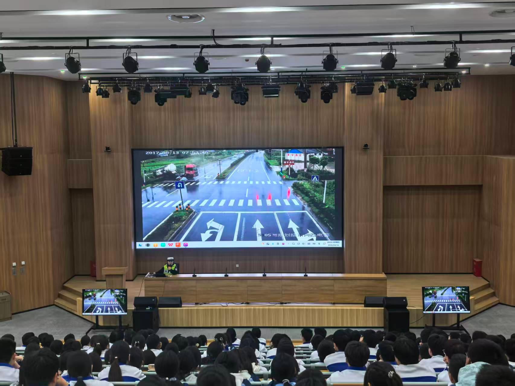 宣讲现场,陈警官通过播放巢湖市本地交通事故合集视频,以真实鲜活的事故案例为切入点,结合画面拆解事故成因,紧扣学生日常出行场景,深入剖析行人出行常见安全隐患,重点警示车辆盲区、恶劣天气制动风险等高发事故场景,让学生直观认识到交通事故的危害与交通安全的重要性。