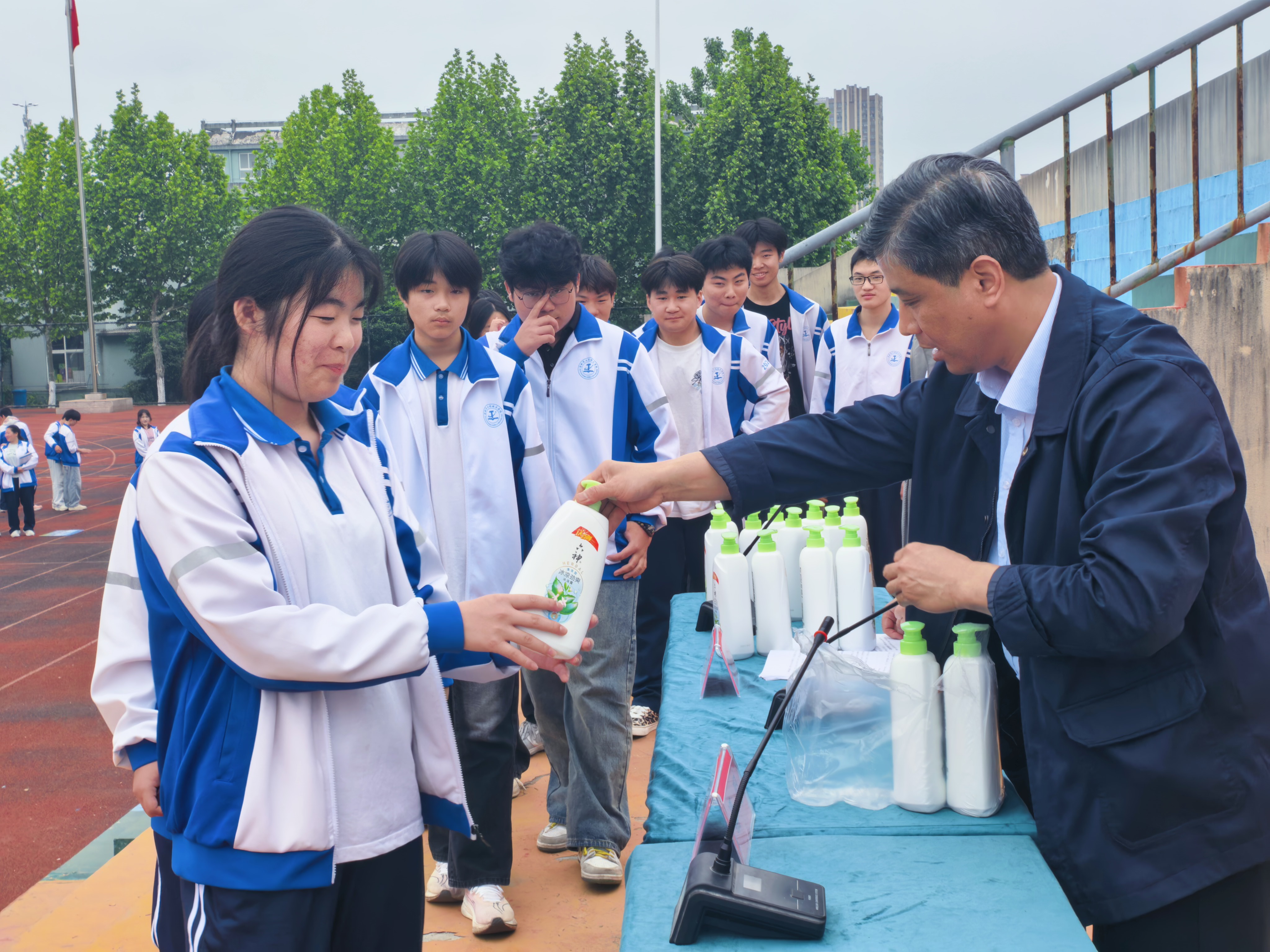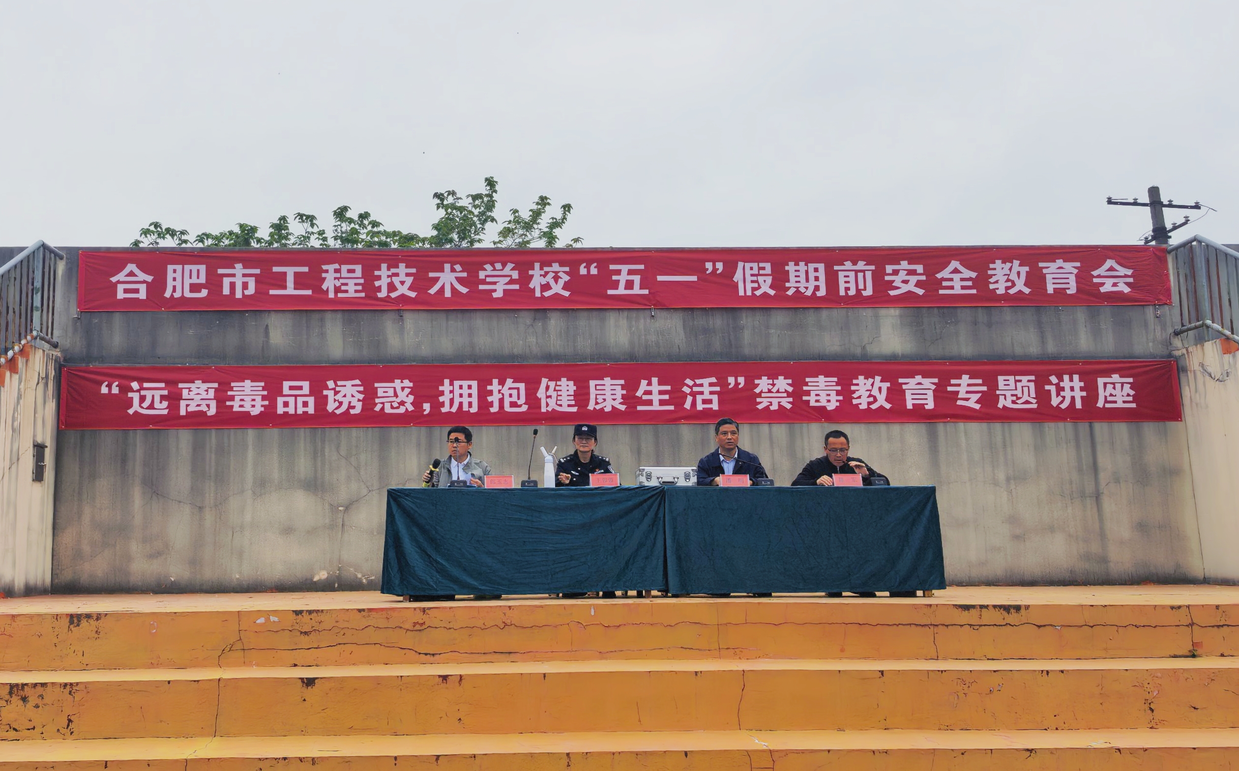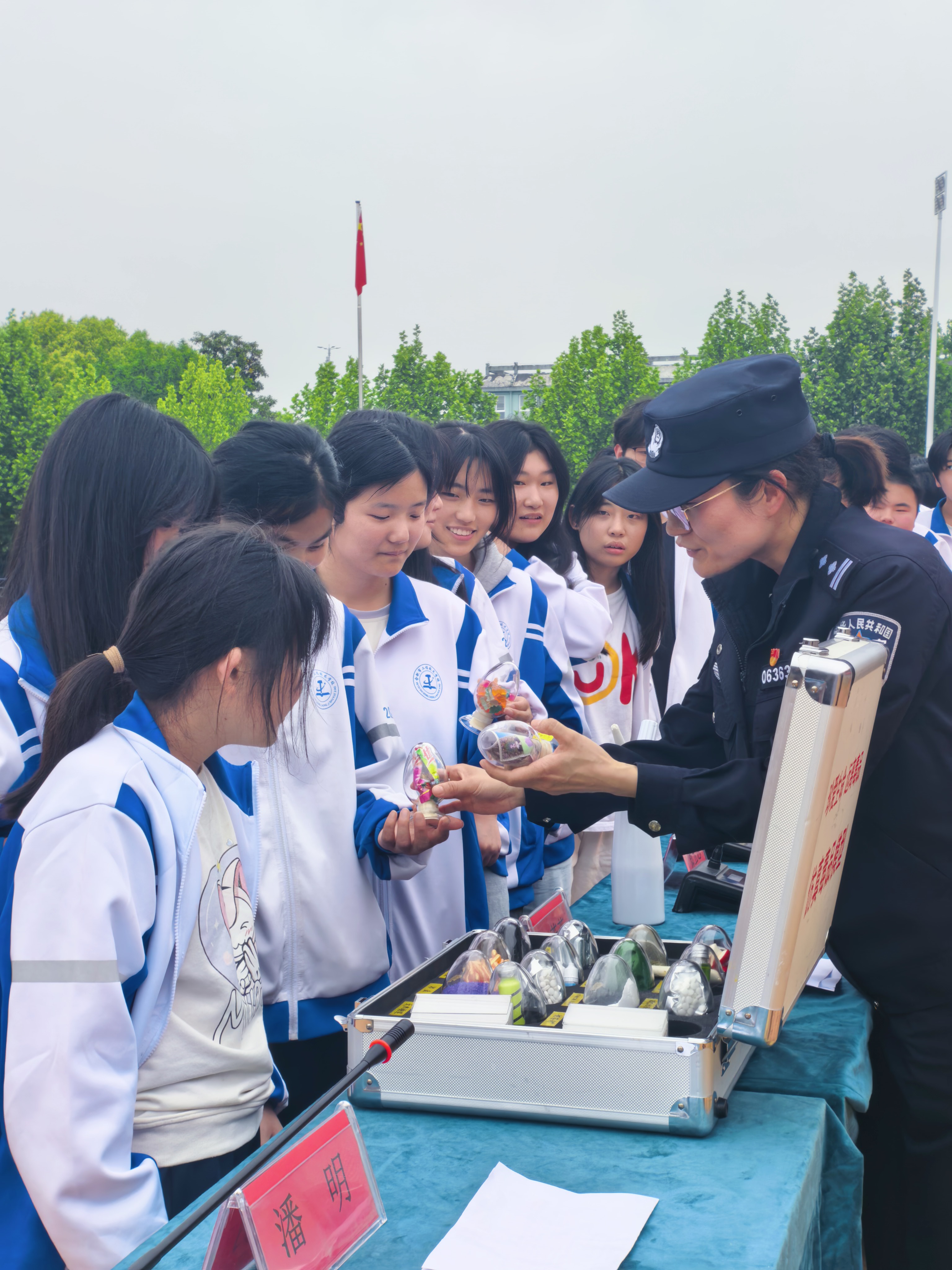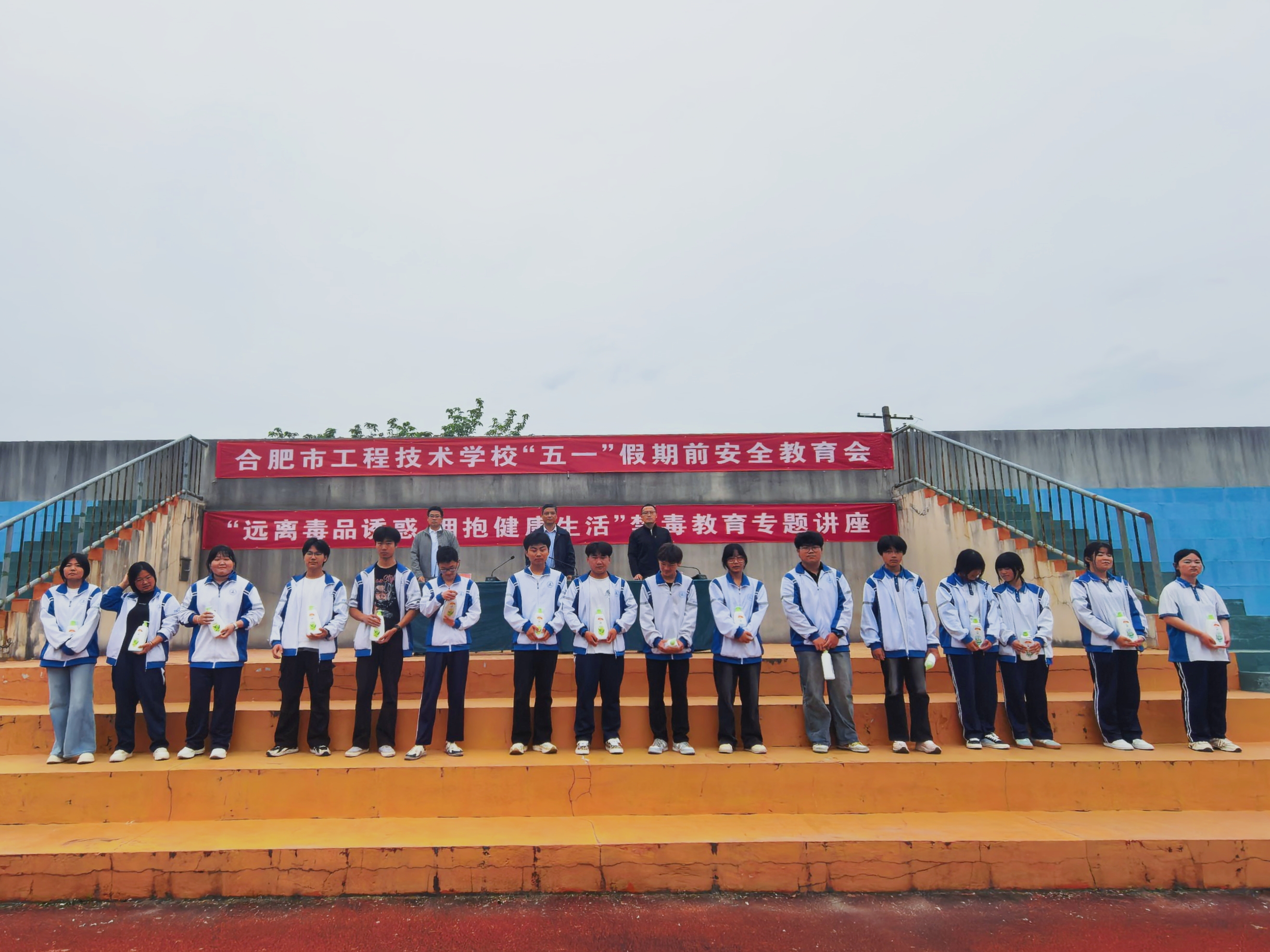 为强化校园安全管理,提升学生法治观念与安全防范意识,营造平安和谐的校园氛围, 4月27日下午,我校在操场召开法治安全教育暨文明寝室表彰大会。政教处主任陈军主持会议,校长潘明出席,各年级部主任、班主任及全体学生参会,特邀巢湖市公安局禁毒办王蓉蓉警官现场宣讲。